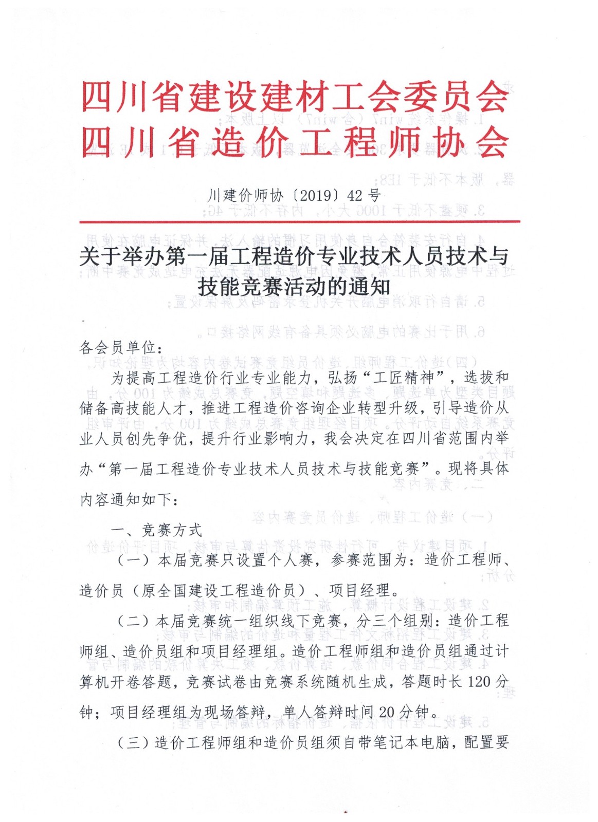 關于舉辦第一屆工程造價專業(yè)技術人員技術與技能競賽活動的通知